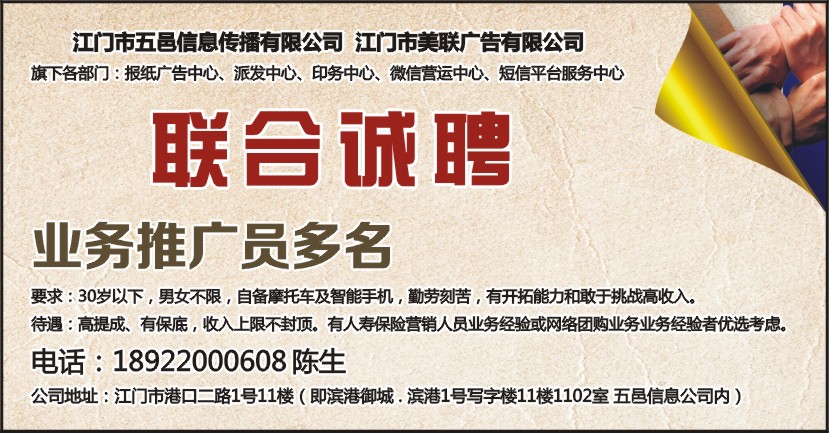 江门市五邑信息传播有限公司 江门市美联广告有限公司 联合诚聘