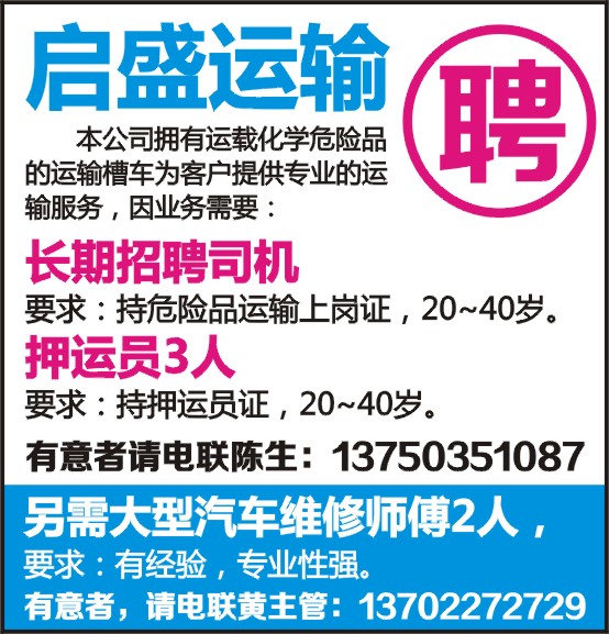 本公司拥有运载化学危险品的运输槽车为客户提供专业的运输服务,因业务需要:
