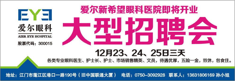 各类专业眼科医生、护士长、护士、市场销售精英、文员,待遇优厚,五险一金,双休,包食住。