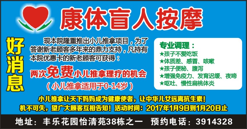 两次免费小儿推拿理疗的机会