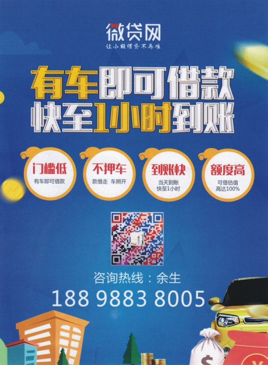 让小额借贷不再难 有车即可借款 快至1小时到帐 门槛低 有车即可借款 不押车 款借走 车照开 到帐快 当天到帐 快至1小时 额度高 可借估值 高达100% 你的贷款专家 你有房吗? 你有车吗? 你有营业执照吗? 你有工作吗? 你有保单吗? 你有流水吗? 只要你满足上面任意一项 想贷款? 绝对一步到位 咨询热线:余生 18898838005
