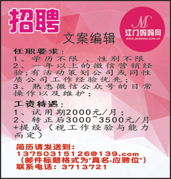 江门妈妈网招聘