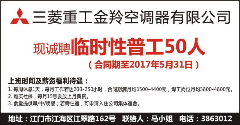 地址:江门市江海区江翠路162号 联络人:马小姐 电话:3863012