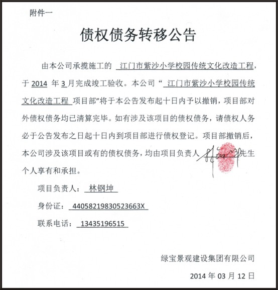 债权债务转移公告