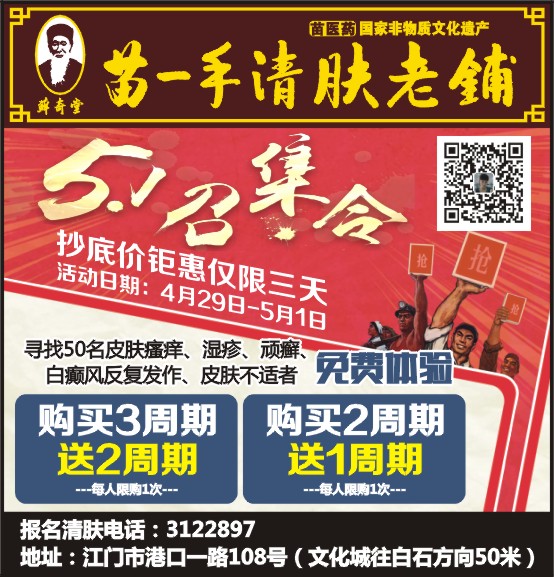 寻找50名皮肤瘙痒、湿疹、顽癣、白癫风反复发作、皮肤不适者免费体验