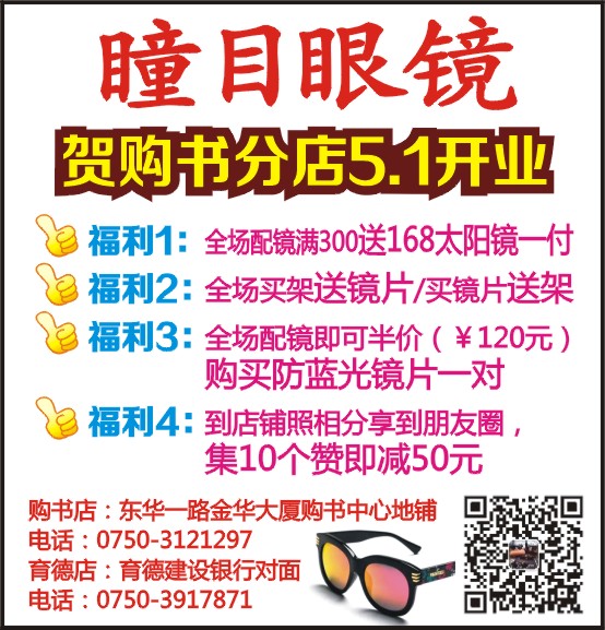 福利3:全场配镜即可半价(¥120元)购买防蓝光镜片一对