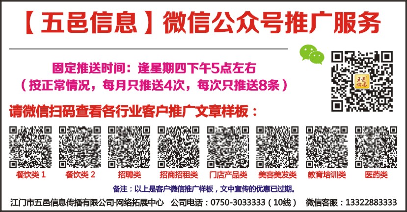 江门市五邑信息传播有限公司·网络拓展中心 公司电话:0750-3033333(10线) 微信客服:13322883333
