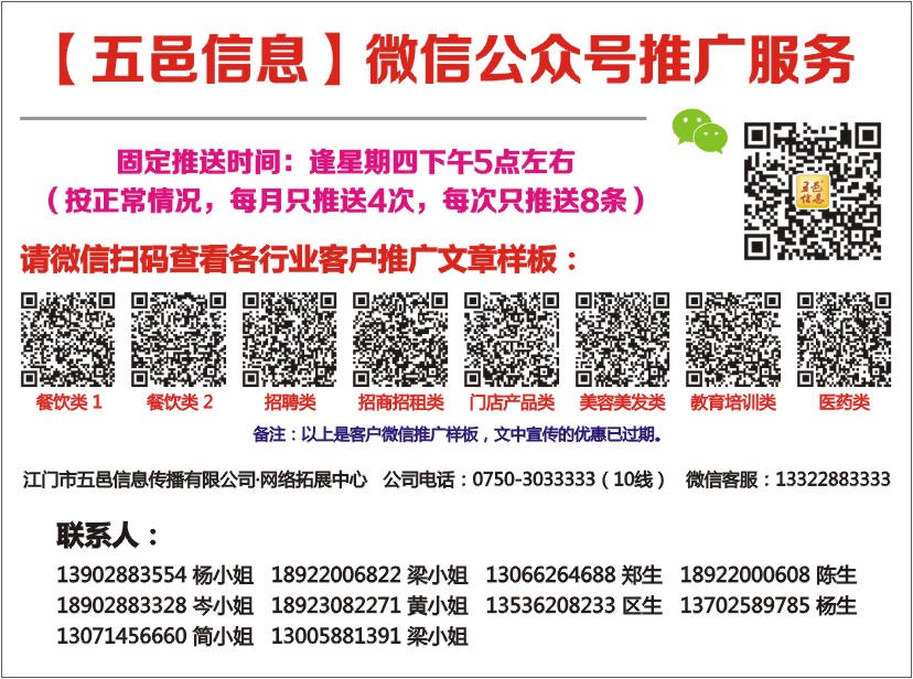 江门市五邑信息传播有限公司·网络拓展中心 公司电话:0750-3033333(10线) 微信客服:13322883333
