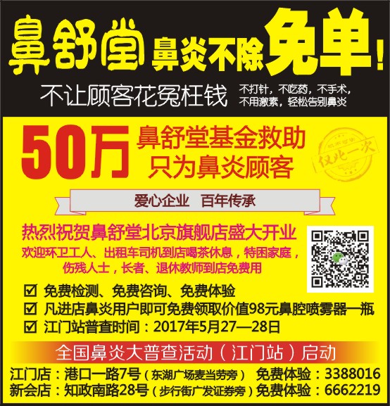 江门店:港口一路7号(东湖广场麦当劳旁) 免费体验:3388016