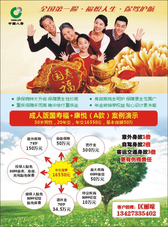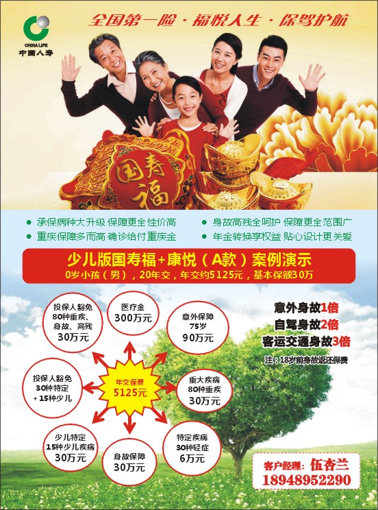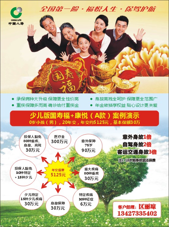 0岁小孩(男),20年交,年交约5125元,基本保额30万