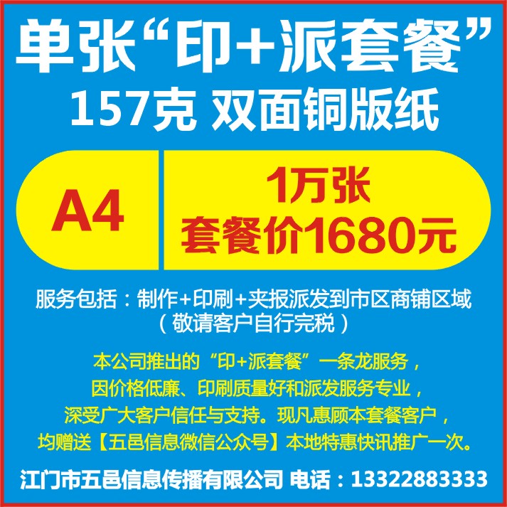 现凡惠顾本套餐客户,均赠送【五邑信息微信公众号】本地特惠快讯推广一次。