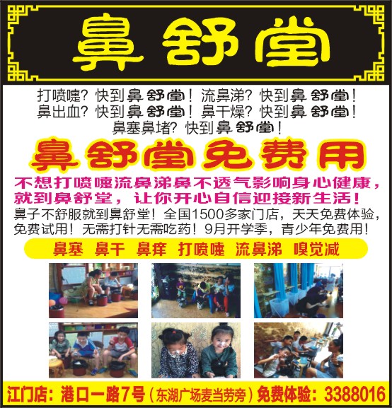 鼻子不舒服就到鼻舒堂!全国1500多家门店,天天免费体验,免费试用!无需打针无需吃药!9月开学季,青少年免费用!