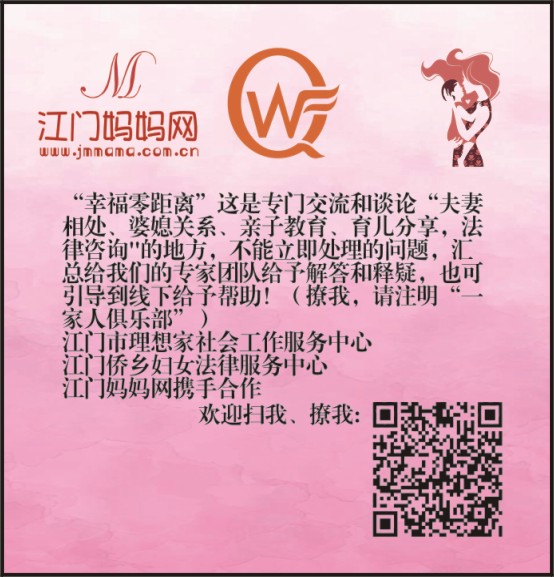 “幸福零距离”这是专门交流和谈论“夫妻相处、婆媳关系、亲子教育、育儿分享,法律咨询”的地方,不能立即处理的问题,汇总给我们的专家团队给予解答和释疑,也可引导到线下给予帮助!(撩我,请注明“一家人俱乐部”)