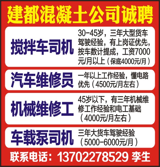 30-45岁,三年大型货车驾驶经验,有上岗证优先,按车数计提成,工资7000元/月以上(保底4000元/月)