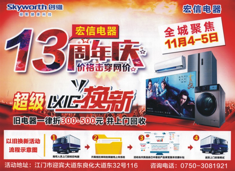 旧电器一律折300-500元 并上门回收