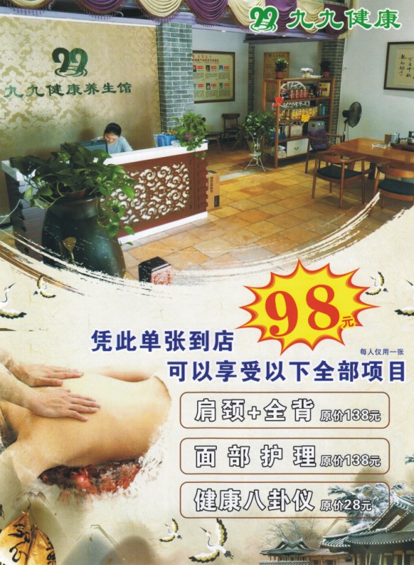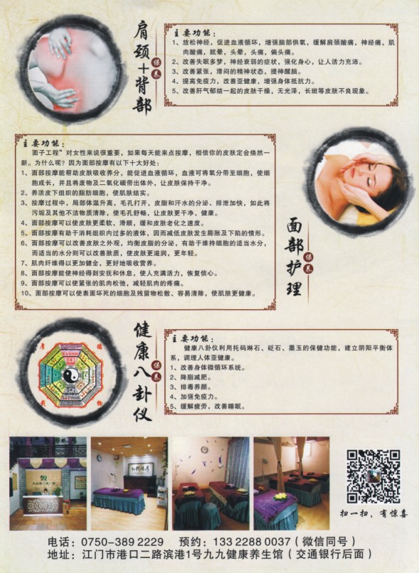 地址:江门市港口二路滨港1号九九健康养生馆(交通银行后面)