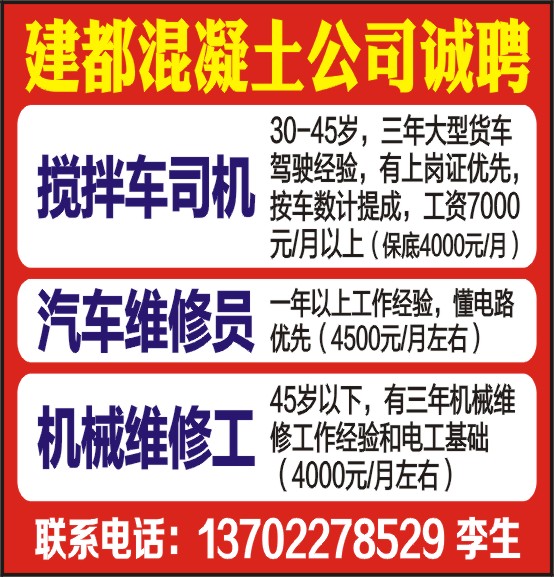 建都混凝土公司诚聘
