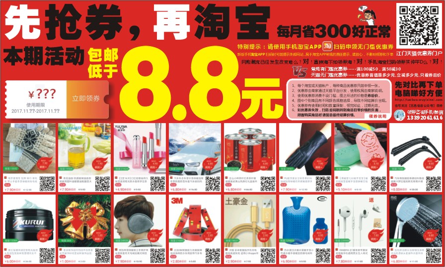 特别提示:请使用手机淘宝APP扫码申领无门槛优惠券