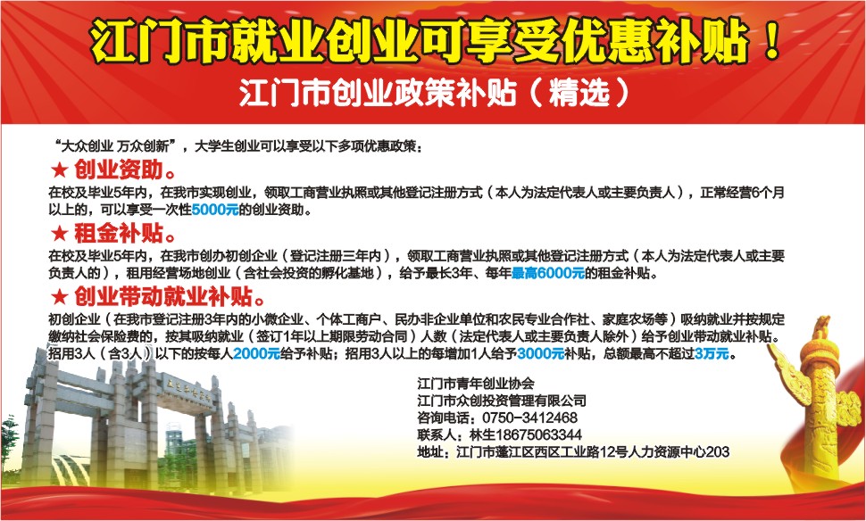 地址:江门市蓬江区西区工业路12号人力资源中心203