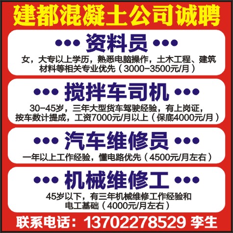 女,大专以上学历,熟悉电脑操作,土木工程、建筑材料等相关专业优先(3000-3500元/月)