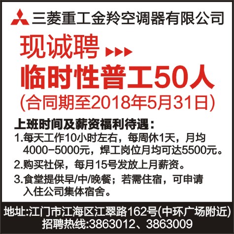 现诚聘临时性普工50人
