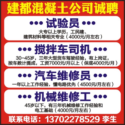 建都混凝土公司诚聘