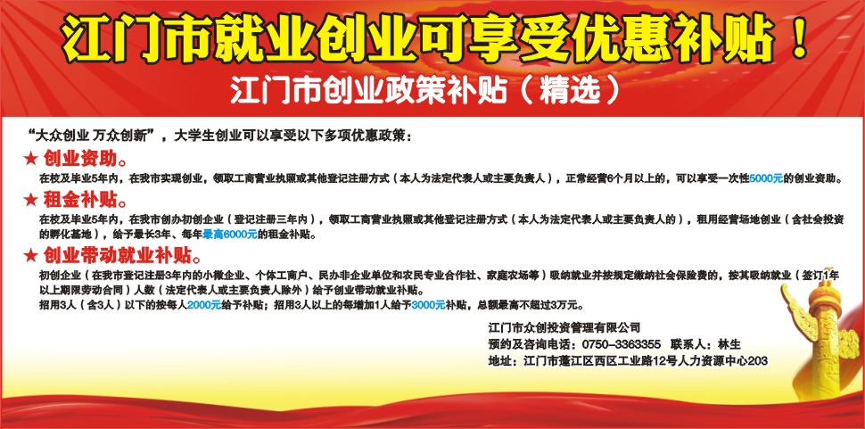 地址:江门市蓬江区西区工业路12号人力资源中心203