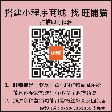 1、 旺铺猫是一款基于微信的购物商城系统能迅速帮您搭建独有小程序购物商城