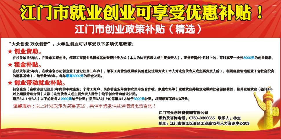 地址:江门市蓬江区西区工业路12号人力资源中心203
