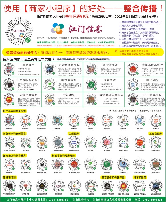 【江门信息】小程序基于微信,支持商家/个人,发布/搜索,是两套系统同时运行并服务江门地区的信息好平台