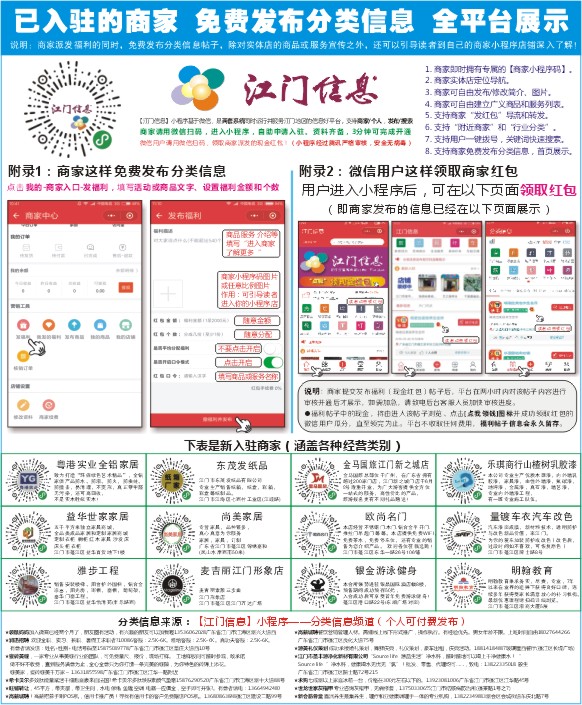 【江门信息】小程序基于微信,是两套系统同时运行并服务江门地区的信息好平台,支持商家/个人,发布/搜索