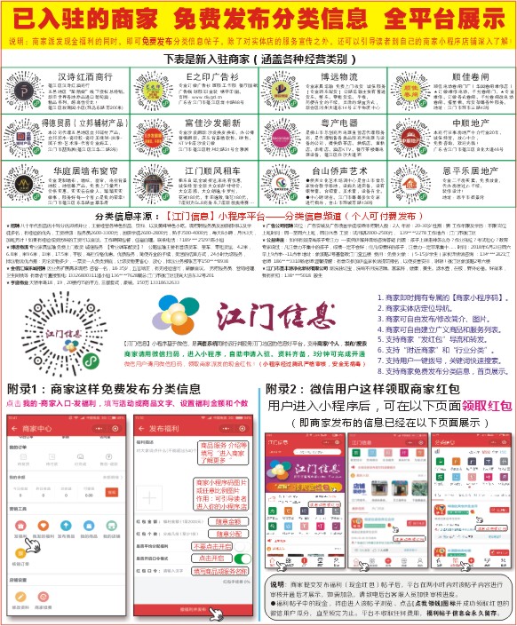 【江门信息】小程序基于微信,是两套系统同时运行并服务江门地区的信息好平台,支持商家/个人,发布/搜索