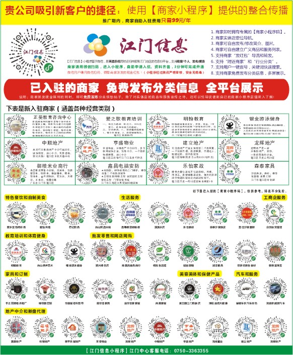 【江门信息小程序】江门中心客服电话:0750-3363355