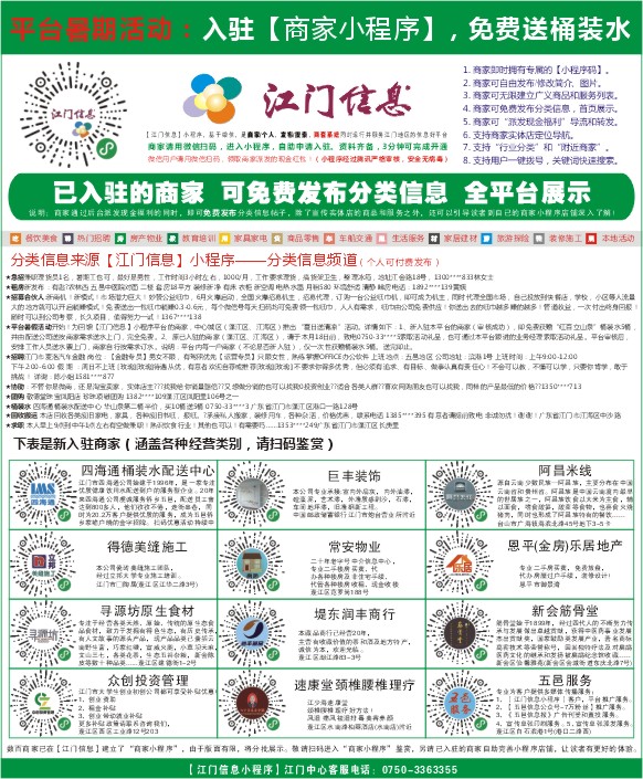 分类信息来源【江门信息】小程序——分类信息频道(个人可付费发布)