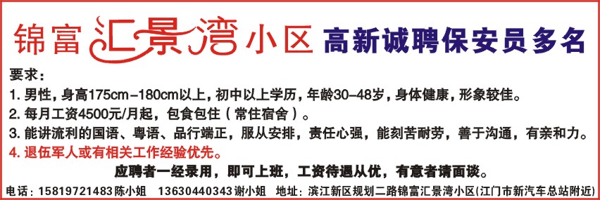 地址:滨江新区规划二路锦富汇景湾小区(江门市新汽车总站附近) |