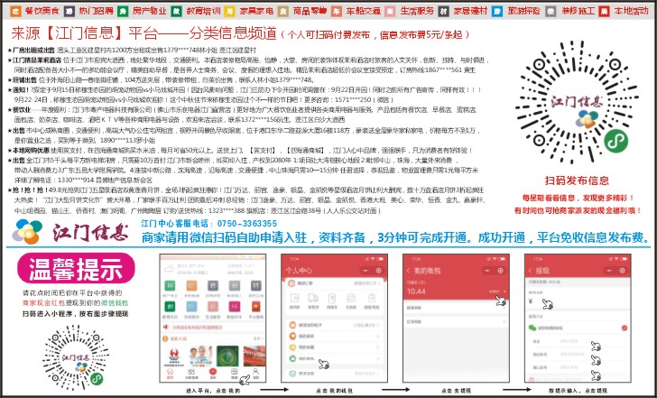 商家请用微信扫码自助申请入驻,资料齐备,3分钟可完成开通。成功开通,平台免收信息发布费。
