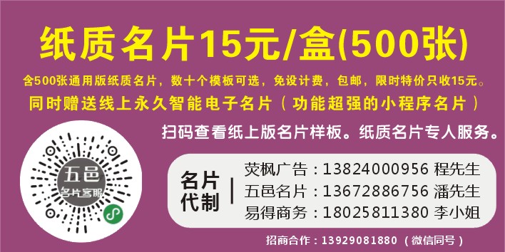 纸质名片15元/盒(500张)