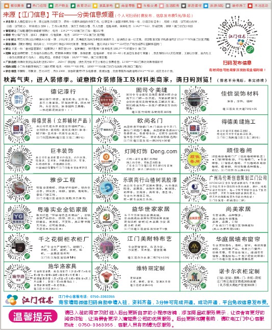 请已入驻的商家及时进入后台更新自家的小程序店铺,添加商品或服务展示,让读者有更好的阅读体验,让消费者更深入清楚贵公司的优质服务。后台更新如需帮助,请致电江门中心客服热线:0750-3363355,客服人员将热情为您服务。