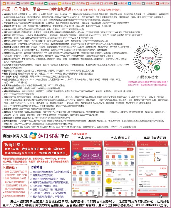请已入驻的商家经常进入后台更新自家的小程序店铺,添加商品或服务展示,让读者有更好的阅读体验,让消费者更深入了解贵公司可提供的优质商品和服务。后台更新时如需帮助,请致电江门中心客服热线:0750-3363355咨询。