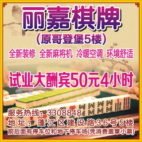 全新装修 全新麻将机 冷暖空调 环境舒适