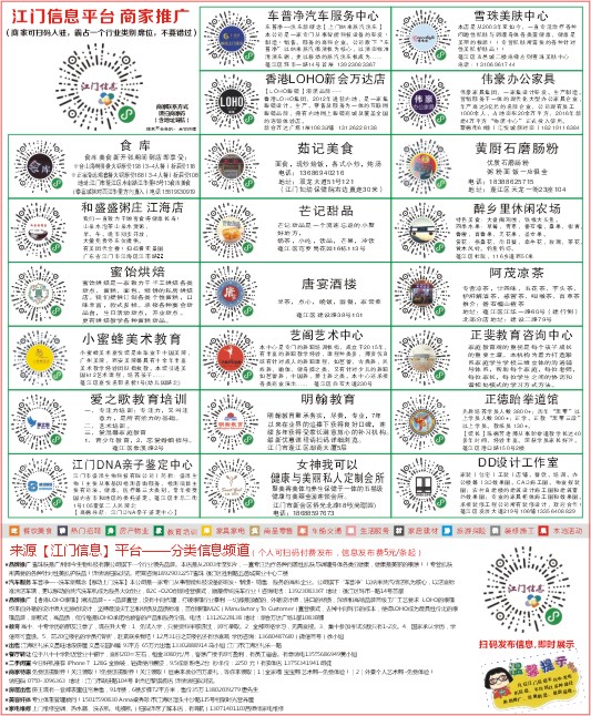 来源【江门信息】平台——分类信息频道(个人可扫码付费发布,信息发布费5元/条起)