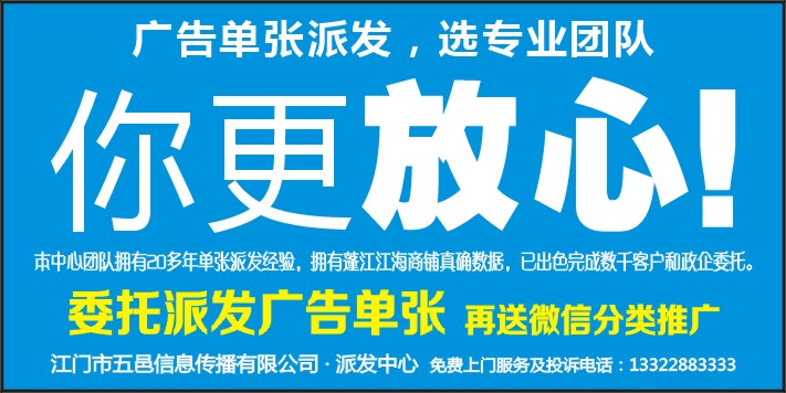 本中心团队拥有20多年单张派发经验,拥有蓬江江海商铺真确数据,已出色完成数千客户和政企委托。