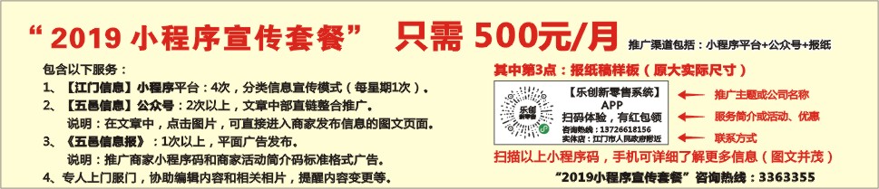 1、【江门信息】小程序平台:4次,分类信息宣传模式(每星期1次)。