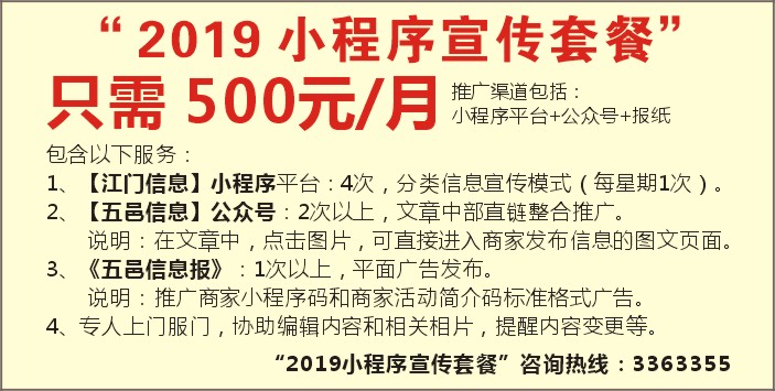 1、【江门信息】小程序平台:4次,分类信息宣传模式(每星期1次)。