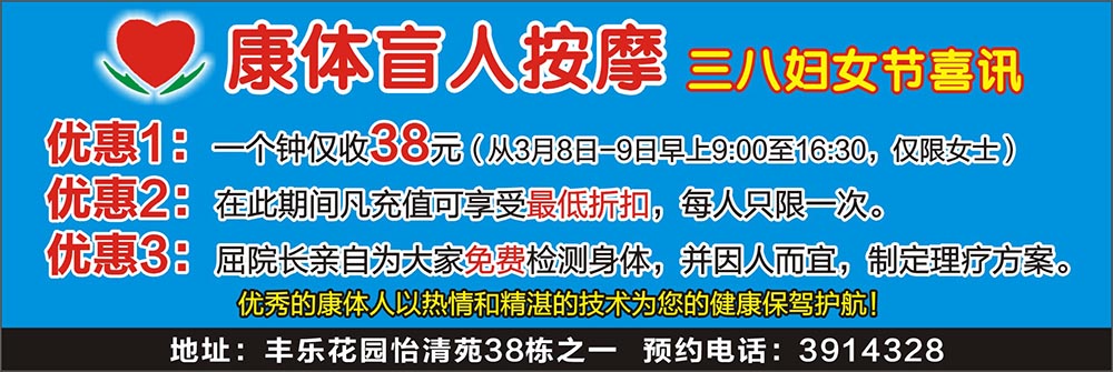 地址:丰乐花园怡清苑38栋之一 预约电话:3914328