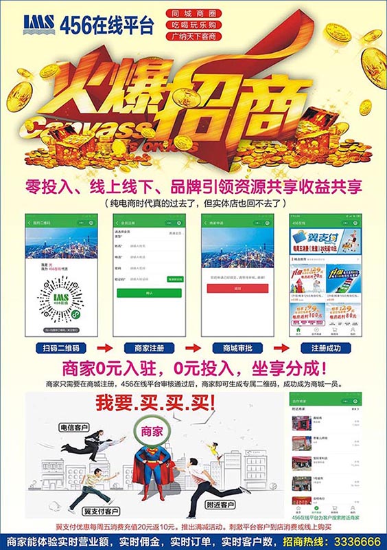 商家只需要在商城注册,456在线平台审核通过后,商家即可生成专属二维码,成功成为商城一员。