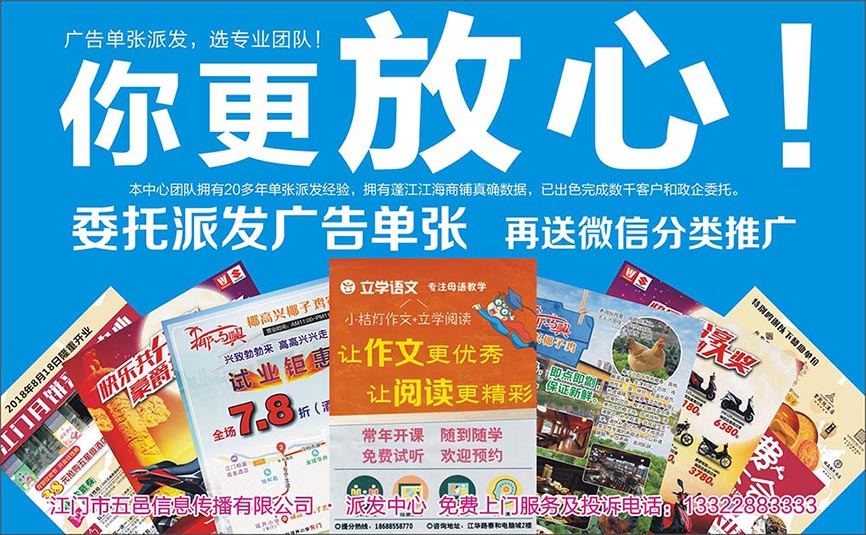本中心团队拥有20多年单张派发经验,拥有蓬江江海商铺真确数据,已出色完成数千客户和政企委托。
