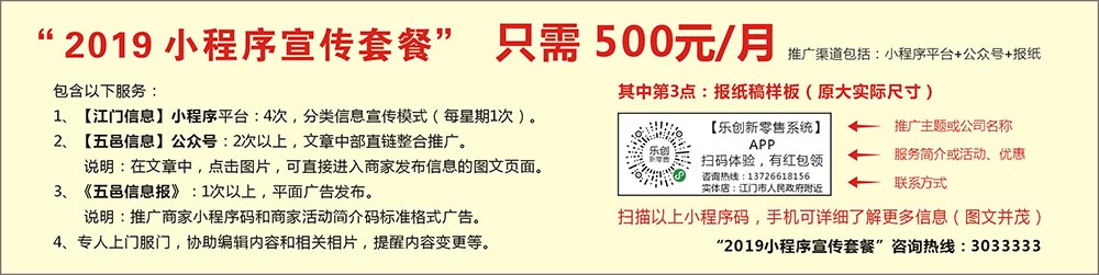 1、【江门信息】小程序平台:4次,分类信息宣传模式(每星期1次)。